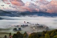 Het dorpje Brinje in het ruige Lika op een prachtige morgen in september.