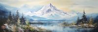 Een digitaal schilderij van het landschap in BC in Canada. Dit panorama kunstwerk heeft een langwerpige smalle vorm, waardoor het uitstekend geschikt is om de lengte van een ruimte te benadrukken.
