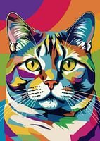In dit gezellige maar dynamische portret zijn de zachte rondingen van de Britse Korthaar gestileerd met speelse spatten van vurig oranje, levendig blauw en zacht roze. Het kunstwerk combineert de zachtaardige, relaxte persoonlijkheid van het ras met de pittige levendigheid van pop-art, waardoor het een ideaal decoratiestuk is voor kattenliefhebbers die een stijlvol, vrolijk accent in hun huis willen.