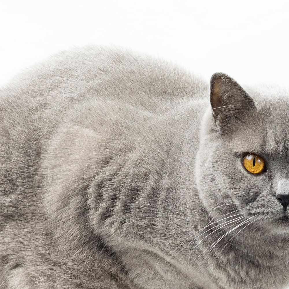 Britse korthaar kat met oranje ogen op witte achtergrond 2/5