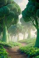 Een betoverend bos van gloeiende broccoli dat de zintuigen prikkelt! Zacht gebogen paden leiden door het weelderige groen, terwijl zacht licht het landschap overspoelt. Deze fantasierijke voorstelling nodigt uit tot dromen en is perfect voor de keukenambiance om een frisse, gezonde sfeer te creëren.