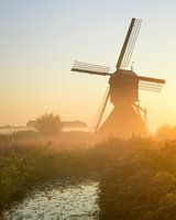 Prachtige broekmolen bij Uppel in Nederland tijdens een mooie mistige ochtend tijdens zonsopkomst.