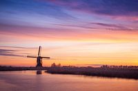 Een foto van de Broekmolen in de Alblasserwaard tijdens een schitterende zonsopkomst op een ochtend vroeg in het voorjaar.