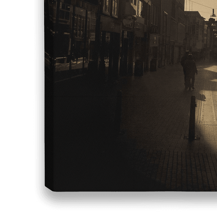 Broerstraat Nijmegen. De winterzon staat laag aan de hemel.
