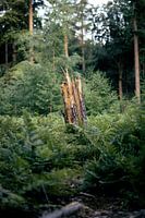 midden in het bos. helemaal alleen en gebroken. Een boomstam die weer en wind blijft doorstaan voor komende jaren.
