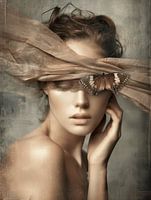 Portret met de titel "Broken wings". Een jonge vrouw met een vlinder met gebroken vleugels. Een bijzondere blikvanger voor je interieur!