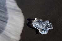 Golven en ijsbrokken op het strand van Breidamerkursandur, Sudursveit, IJsland