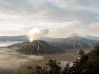 Bromo vulkaan met rookwolk op Indonesisch eiland Java van Daan Duvillier | Regio in de Kijker