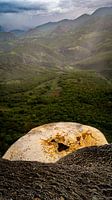 Bij Hierve el Agua heb je veel waterbronnen boven op de berg. Deze bron bubbelde water precies aan de rand. De witte en oranje kleuren zijn gevormd door de verschillende mineralen welke zich bevinden in het water. Het prachtige uitzicht vanaf de berg na een regenbui maakt het plaatje helemaal af.