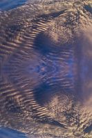 Bronskleurige wolken in de donkerblauwe avondrood. Een symmetrische compositie van lucht en licht. Dit werk is geïnspireerd op de schilderachtige wolken bij zonsondergang aan de Middellandse Zeekust in Spanje.