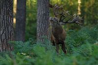 Bronstig Edelhert in boslandschap met varens