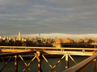 Zonsondergang vanaf de Brooklyn Bridge in New York. Met zicht op Empire State building en Manhattan.