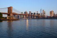 De in 1883 gebouwde Brooklyn Bridge is een hangbrug in New York over de East River. Hij verbindt Brooklyn met Lower Manhattan. De foto is genomen vanaf DUMBO, Brooklyn.