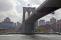 Brooklyn Bridge over de East River tussen Manhattan en Brooklyn, gezien vanaf de kant van Brooklyn