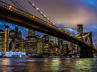 Manhattan en de Brooklyn bridge gezien vanaf Dumbo, Brooklyn.World trade center, bovenste helft in de wolken