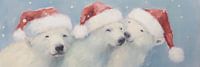 Drie lieve IJsbeertjes klaar voor de kerst. De pastelkleuren en het lage contrast zorgen voor een serene uitstraling. Breng de gezelligheid van kerst in jouw huis met dit charmante werk!