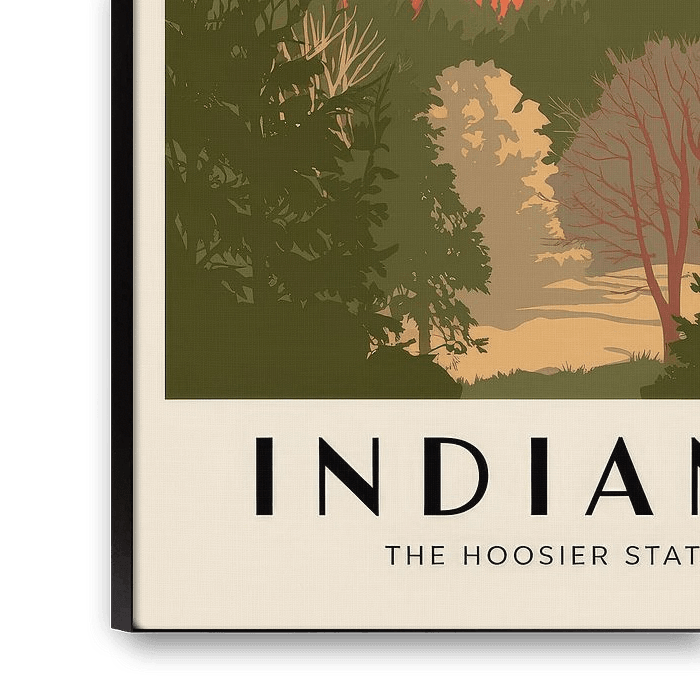 Een schilderachtig tafereel in de glooiende heuvels van het Brown County State Park. De warme aardetinten en weelderige bossen creëren een uitnodigende sfeer. Ideaal voor de woonkamer om een vleugje natuur in huis te brengen en ontspannen gesprekken of rustige momenten aan te moedigen. Een blikvanger die de ziel verrukt.