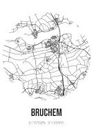 Zwart-witte landkaart, stratenplan of plattegrond van Bruchem. Bruchem is gelegen in de Betuwe, in de gemeente Zaltbommel, provincie Gelderland. Op de stadskaart zijn alle openbare wegen in Bruchem opgenomen. Verder is de kaart voorzien van de coördinaten van het centrum van Bruchem.