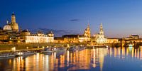 De Brühlsche Terrasse, de Frauenkirche, de Hofkirche en de Semperoffers in Dresden bij nacht.