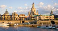 Brühlsche Terrasse in Dresden met de Frauenkirche en een raderstoomboot op de Elbe