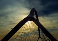 De nieuwe brug De Oversteek over de Waal bij Nijmegen. Geschoten vanuit een rijdende auto komend vanuit de richting Oosterhout.