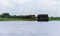 Brugruïne over de Rijn bij Wesel, Duitsland. Dit is vergane glorie.
