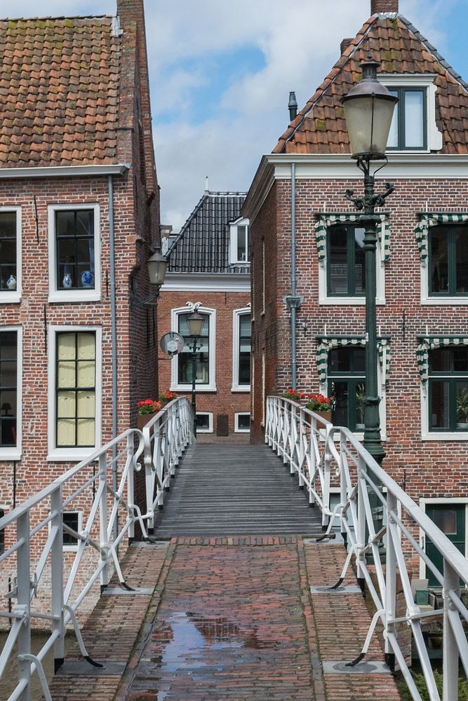 Een leuk bruggetje over het water in het pittoreske centrum van Appingedam bij Delfzijl.