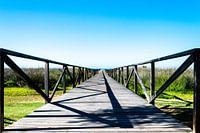 Met deze brug kom je terecht op een schitterend strand. In Conil de la Frontera, Andalusië in het zuiden van Spanje.