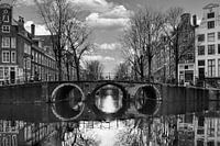 Dit werk toont een serie oude bruggen over de Leidsegracht in Amsterdam, gezien vanaf de Herengracht. Van dit werk zijn diverse varianten beschikbaar.