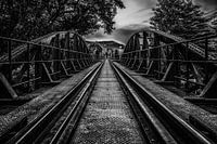 Koop de foto Brug over de Kwai Rivier Zwart Wit van Mario Calma als print op canvas, aluminium dibond, (ingelijste) fotoprint, behang en ArtFrame. Voor jou op maat geprint in Fine-Art kwaliteit.