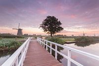Nevel en zonsopkomst zijn mooie condities voor een sfeerplaat. Door de nevel worden de kleuren echte pastelkleuren. Deze foto is gemaakt tijdens zo'n zonsopkomst op Werelderfgoed Kinderdijk (Zuid-Holland, Nederland), bij de Kinderdijkse molens. De brug leidt naar de bezoekersmolen, maar vormde nu...samen met de molen en de boom het…