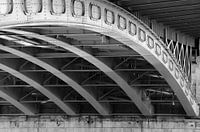 De bijna abstracte vorm van de brug over de Donau bij het eiland Sziget
