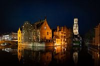 De iconische plek van Brugge, de Rozenhoedkaai hier in een heerlijke avondfoto gevangen. Romantisch en zeer sfeervol is dit één van de hoogtepunten in Brugge. Middeleeuwse gebouwen aan de rand van het water met een fantastische weerpsiegeling.