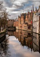 Stadsfotografie in de oude binnenstad van Brugge, bij de Dijver. De reflectie van de oude gebouwen is mooi te zien in het water.
