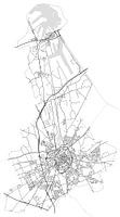 Een minimalistische plattegrond met het stratenplan en de omlijning van Brugge, West-Vlaanderen, België.
