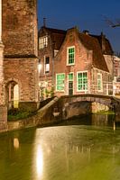 Het gaat om een nachtopname tijdens het blauwe uurtje. Het bruggetje is te vinden achter de Nieuwe Kerk, op de kruising kerkstraat, vrouwenregt. Het huisje dat je ziet is de oude beiaardschool. Ik heb geprobeerd zijn tekening na te maken als foto en heb gekozen voor de nacht omdat de kleuren er dan uitspringen. Het is in ieder geval gaaf om op dezelfde plek te staan