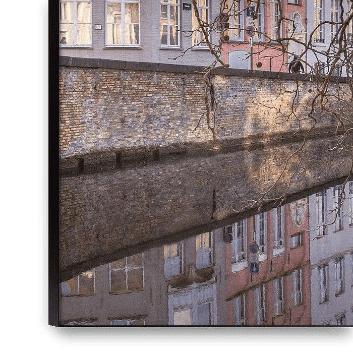Koop de foto Brugse Spiegelrei en Spinolarei met reflectie in het water | Stadsfoto van Daan Duvillier | Regio in de Kijker als print op canvas, aluminium dibond, (ingelijste) fotoprint, behang en ArtFrame. Voor jou op maat geprint in Fine-Art kwaliteit.