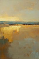 Bruin en Goud in de Lucht - In dit abstract schilderij zie je een zachte mix van bruin en goud met een horizon die de lucht weerspiegelt, waardoor een gevoel van ruimte en rust ontstaat, terwijl de gouden details een sprankeling aan het geheel geven.