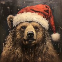 Bruine Beer met een Kerstmuts op. Breng de warmte van kerst in jouw huis met dit charmante werk!