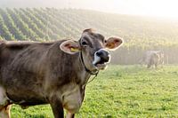 Deze leuke afbeelding van een koe tegen een blauwe lucht zal jouw interieur meteen gezellig maken!