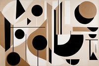 "Bruine Symfonie" is een abstract schilderij waarin een rijk palet aan bruine tinten samenvloeit met zwart en wit, wat een zacht maar sterk contrast creëert. De kunstenaar speelt met zowel geometrische als organische vormen, wat leidt tot een intrigerende compositie. De vloeiende lijnen verbinden de verschillende vormen en creëren een gevoel van beweging en diepte. Dit moderne kunstwerk balanceert tussen de strakke discipline van de geometrie en de vrije expressie van de organische vormen, wat resulteert in een harmonieuze en boeiende visuele ervaring. De subtiele overgangen tussen de kleuren en de speelse afwisseling van licht en donker geven "Bruine Symfonie" een warme en uitnodigende uitstraling die de kijker blijft boeien en uitnodigt tot contemplatie.