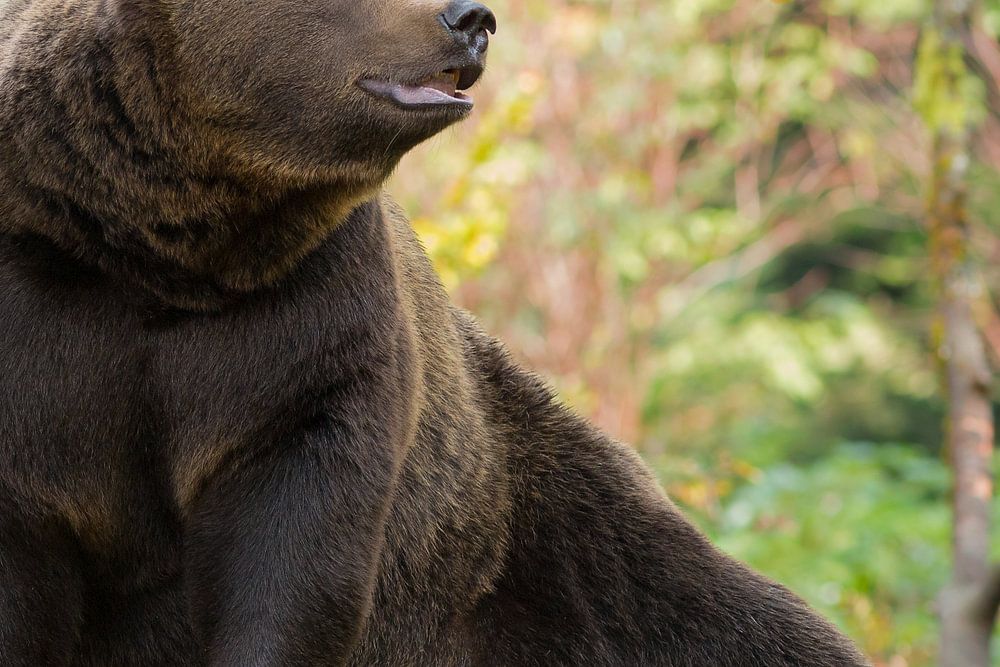 Bruine beer zit op een rots in het Beiers woud in een herfstsetting.