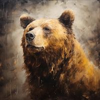 Unieke Bruine beer schilderij met een artistieke stijl.