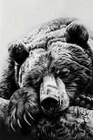 Deze prachtige zwart-witfoto van een slapende beer straalt rust en sereniteit uit. De gedetailleerde weergave van de vacht en de zachte contouren van het lichaam nodigen uit tot contemplatie en ontspanning. Het contrast tussen licht en donker versterkt de dramatiek van het beeld en creëert een gevoel van diepte en mysterie. Een tijdloze…