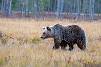De bruine beer leeft onder ander in Finland. Vlakbij de grens van Rusland heb je kans dit machtige dier tegen het lijf te lopen. In de herfst periode maken ze zich klaar voor de winterslaap. Dan struinen ze dus tegen de schemering door de prachtige natuur op zoek naar voedsel. Gaaf om zo'n groot dier op de vlakte te zien struinen.
