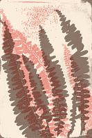 Gemengd media kunstwerk. Monotype van weidebloemen in neutrale pastelkleuren.