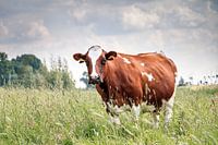 Prachtige opname van een bruin rode gevlekte Holstein-Friesian koe (Bos Taurus) in een veld in Nederland