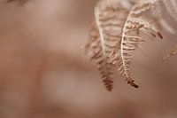 Twee bruine, hangende bladeren van de varen. Het beeld straalt rust uit door de monotone kleuren en herfst door de bruine kleuren.