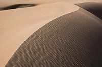 Schaduw die op een zandduin valt, terwijl de zon ondergaat. Deze foto is gemaakt in de Grote Zoutwoestijn Dast-e Kavir in Iran.