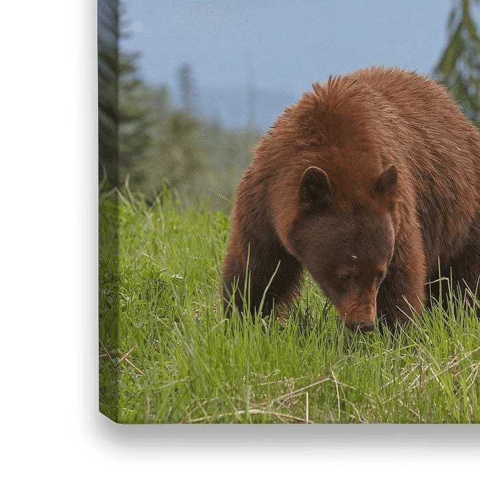 Bruine zwarte beer met in de achtergrond de rocky mountains van Canada